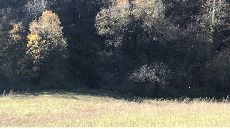 1. […] Dopo questo incontro e un breve tragitto in discesa lungo una carraia immersa in un querceto, si arriva di nuovo sulla strada asfaltata che di lì a poco scenderà fino all’imbuto formato dalle poche case della borgata conosciuta come “Le Bagole”. Bellissima la luce che illumina poco distante il borgo di “Casara” e i dolci pendii ancora vivacizzati dai bei colori autunnali. Poco dopo rimango letteralmente incantato mentre il vento fa volare foglie da un boschetto. Grazie all’angolazione della luce solare le foglie che volano sopra un ampio prato stabile brillano come fossero polvere di stelle. Silenzio, venticello e questo piccolo, ma meraviglioso spettacolo mi rapiscono totalmente per qualche istante, che passo a bocca aperta. Purtroppo il tutto non dura più che qualche attimo, che però si fissa in modo profondo in me e mi ispira a scriverne coi una delle mie composizioni in dialetto (se volete leggerla potete trovarla qui). […]