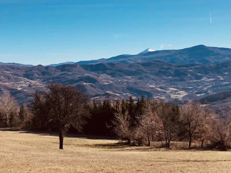 La stanza è intrisa dei profumi delle essenze che borbottano nel vaporizzatore sul tavolo. Sento i primi pellet cadere nel bracere per la riaccensione della stufa. Ancora un attimo mi dico. Voglio stare sotto le coperte a godermi i sogni, il calduccio e questa coccola fatta di profumi e pensieri. A fatica esco dal letto e metto il primo piede nudo sul gelido pavimento, con l’immediata tentazione di tornare sul mio passo appena compiuto. Alla fine mi sforzo ed esco per vestirmi velocemente. La stufa comincia a spingere nella fredda stanza il tiepido venticello, che di fronte al bocchettone diventa un piacevole scirocco col quale rinfrancarsi. Mi preparo con calma, ma risoluto, più per non permettermi il pensiero di cambiare idea, che per premura. Il pensiero che mi gira in t esta ormai da qualche settimana è: devo tornare sul Penna. Sono passati veramente tanti anni dalla prima e, fino a quel momento, unica volta in cui in solitaria decisi di guadagnarmi la vetta del monte che spicca come una terrazza e sta lì impettita col suo caratteristico costone roccioso a fare da spartiacque fra la valle del Dolo e quella del Secchiello. Racconto qui di quell’ormai lontano e torrido 20 agosto 2017, quando per arrivare sul prato pianeggiante che è mia meta di oggi, partii da Costabona, borgata in cui stavo trascorrendo alcuni giorni di vacanza e che costringeva ad un tragitto più lungo e ad un dilivello superiore a quello che mi preparo ad affrontare oggi. Cambiano notevolmente anche le condizioni climatiche, visto che, nonostante sembri di essere in autunno o all’inizio della primavera, siamo in gennaio.