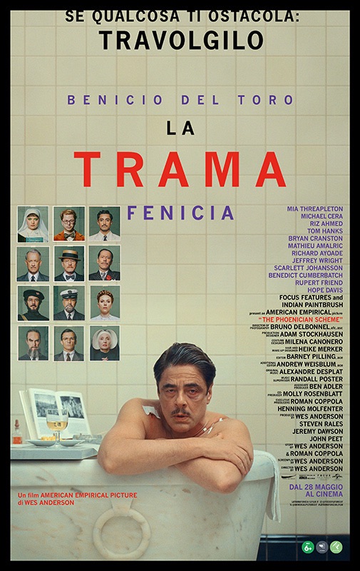 Poco più di un’ora e mezza in cui seduto nel buio della sala posso godermi immagini eleganti e dal perfezionismo quasi maniacale, colori e costumi che ammaliano e poco male se chi ne capisce dice che questo è un film che non serve a nulla e che questo regista ha già fatto almeno due volte. A parte che per me era tutto nuovo, io come al solito dal cinema mi aspetto emozioni e anche se non ho capito esattamente perché, La Trama Fenicia mi ha dato quelle giuste. Un po’ di inspiegabile, ma potentissimo amore a pelle, che delle volte vale almeno quanto ragionate storie d’amore. Risate non sguaiate, date da un umorismo giusto per me. Una bella avventura insomma, nel momento giusto: delle volte, la fortuna!