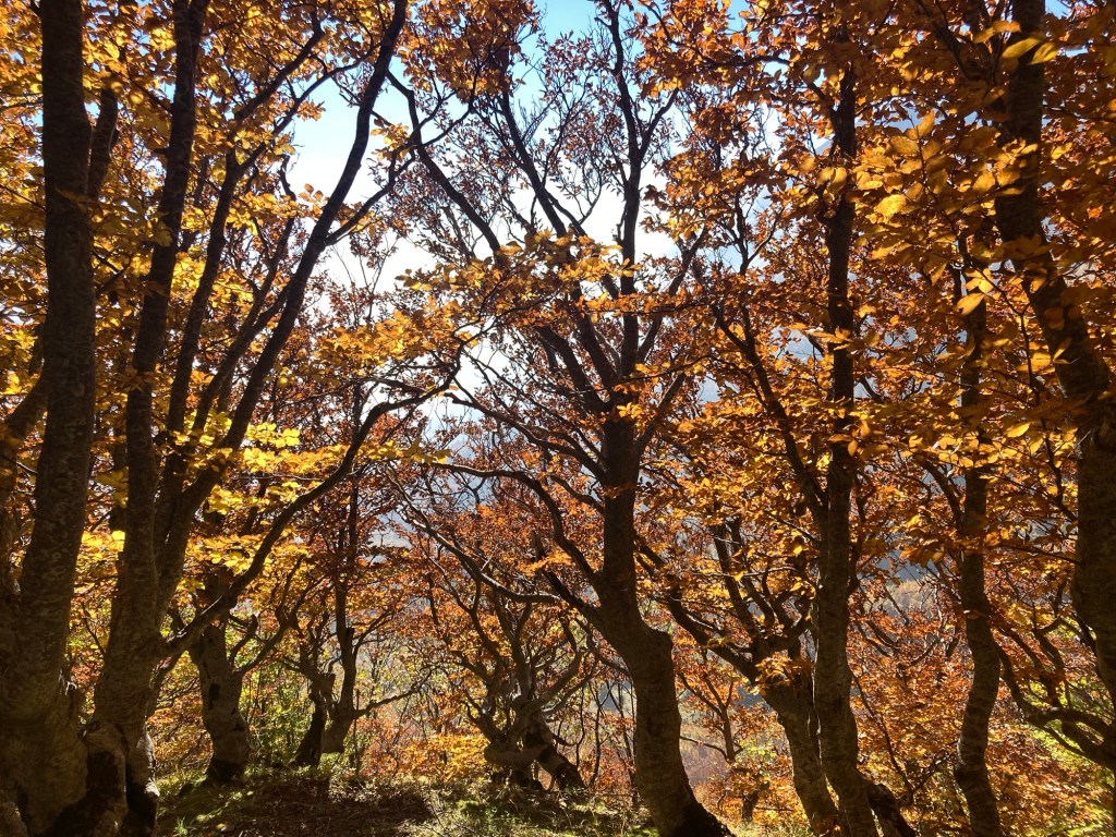 Il sole scalda i faggi piegati dai venti