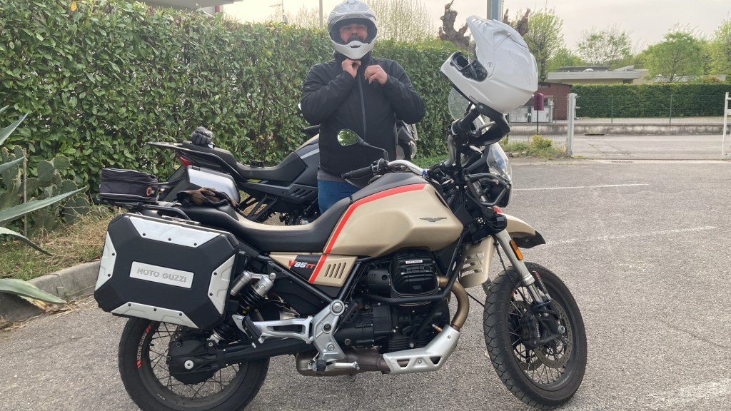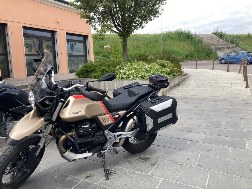 Se c’è una cosa che non mi piace per niente è viaggiare in autostrada in moto: noioso e questa mattina anche un po’ freschino. Sono da poco passate le 9 del mattino e siamo partiti da circa un’oretta dalle rispettive case, per poi ritrovarci alle porte di Modena per un caffè. Purtroppo già lì perdiamo un pezzo: nella prima parte di questa zingarata dovevamo essere in tre, ma problemi meccanici al mezzo del terzo gli suggeriscono di non rischiare di rimanere a piedi lontani da casa. Partiamo quindi in due: Budu su una Moto Guzzi Stelvio ed io su una Moto Guzzi V85 TT – Travel.