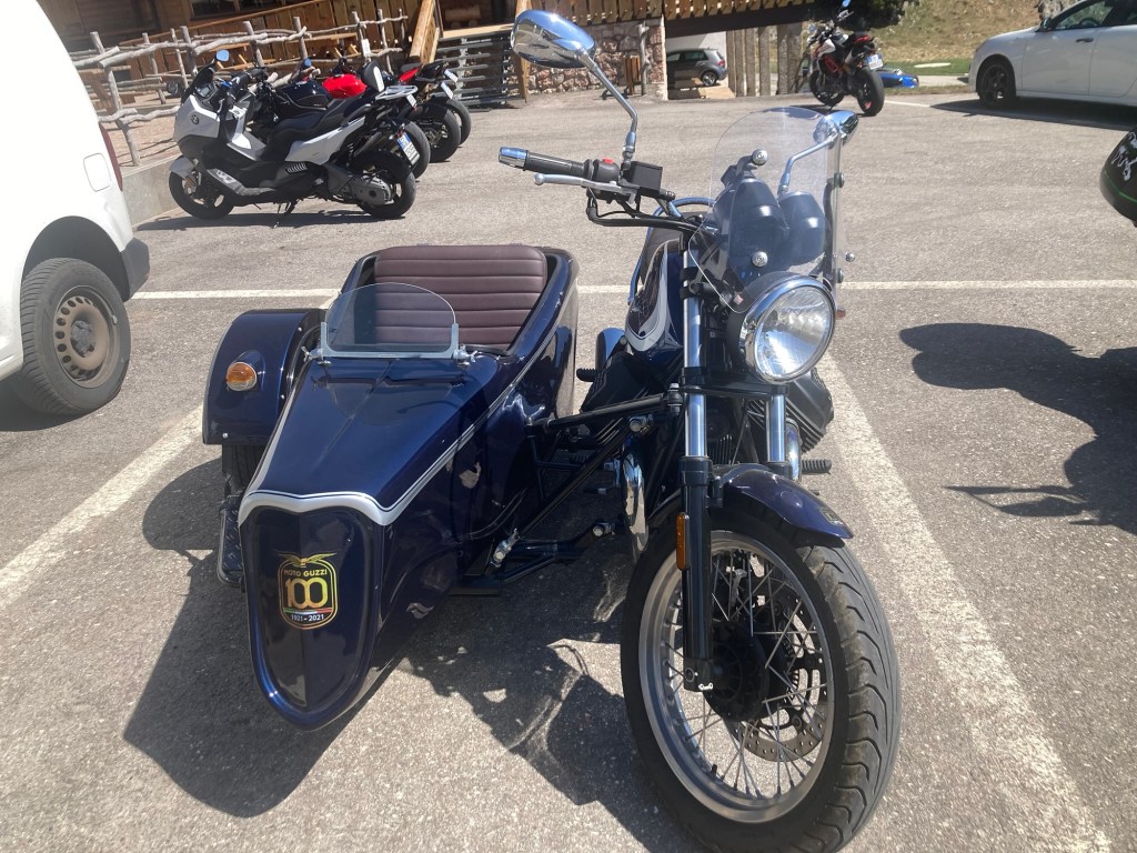 Il pranzo a base del classico tagliere di salumi e formaggi, un po’ di verdure, polenta e gulash, gnocchi di patate con un buonissimo intingolo di aglio orsino, il relax e le chiacchiere, ci ritemprano un po’ dopo questo primo tratto di zingarata. Manca ancora molto alla meta, ma le strade più impegnative, le curve più audaci sono ormai alle spalle. Ripassiamo il programma, mentre nel vicino caminetto crepitano grossi ceppi a ricordarci che qui l’inverno deve ancora finire del tutto. Dopo circa un’oretta siamo pronti a ripartire, non prima, però, di aver ammirato un bellissimo sidecar su base Guzzi V7 850 centenario. La targa se non ricordo male è olandese. Uno spettacolo, così come la luce che illumina le vicine montagne dalle quali siamo sovrastati. Dobbiamo salire ancora un po’, prima di sconfinare in Trentino e scendere lungo la SP3 fino a Bretonico…ma…neve sulla strada poco dopo la ripartenza…neve e moto non vanno d’accordo. Rallento, sono fermo, appoggio il piede, scivola…appoggio anche la moto. Nessu danno, solo qualche bestemmia. Vedo Budu che dopo aver proseguito un po’ torna indietro…la strada è sbarrata. Rimettiamo in piedi la moto e accettiamo senza troppi drammi il cambio di programma: si deve tornare sui nostri passi, perché di lì non si passa…