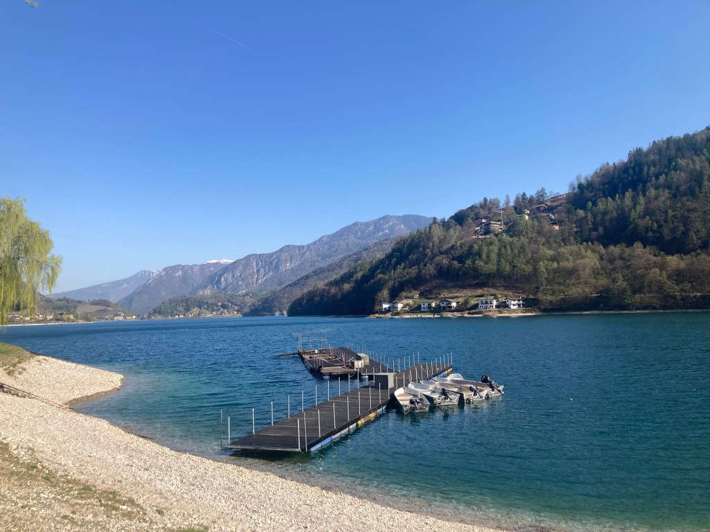 Poco prima di entrare nell’abitato di Biacesa, la strada torna a puntare verso ovest e finite le lunghe gallerie, possiamo di nuovo godere di una strada con panorami da favola, ma soprattutto dove guidare è un piacere. Anche il traffico qui è sopportabile. Salvo un paio di tratti con qualche tornantino, la strada permette di ammirare serenamente ciò che ci circonda. Subito dopo Molina di Ledro, ecco che sulla nostra sinistra arriva un altro scorcio da lasciare senza parole: il Lago di Ledro, incastonato fra vette non altissime, ma che lo strizzano fra il verde. Lo percorriamo fino all’estremità più lontana rispetto al nostro senso di marcia e qui decidiamo che sarebbe davvero un peccato non fermarsi, anche perché sono quasi tre ore che viaggiamo dopo la pausa pranzo e le gambe hanno decisamente bisogno di sgranchirsi.