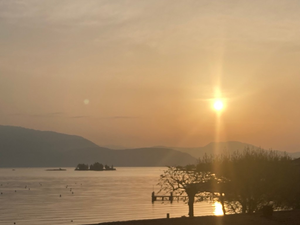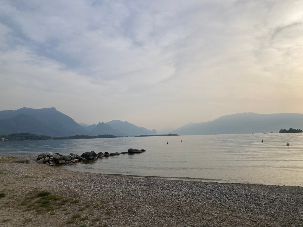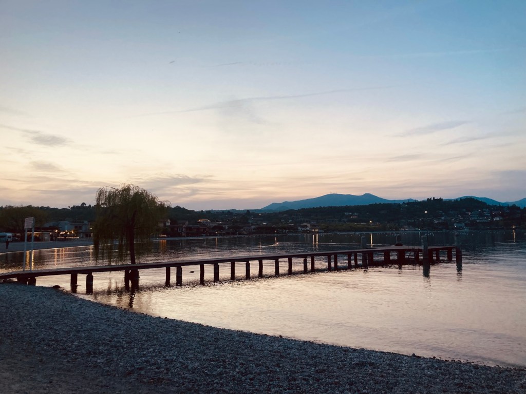 Ma la meraviglia non è finita e dopo Ponte Caffaro, eccoci a costeggiare le sponde del Lago d’Idro. Ormai siamo così abituati alla bellezza, che lo guardiamo passando piano, senza forzare la marcia, ma senza trasalire, come invece era capitato poco prima di fronte al grande spettacolo che stavamo vivendo, attraversandolo. Una cosa avevamo notato poco prima, nel passaggio fra Trentino e Lombardia: la qualità dell’asfalto. Come si diceva, se è perfetta mette serenità, ma purtroppo qui lo stato è pessimo e ne toglie parecchia. Quando un luogo comune trova piena e palese corrispondenza nella realtà. Per fortuna, dopo alcuni tratti decisamente poco curati o addirittura dissestati, la strada torna ad essere quantomeno decente. La sera inizia ad allungare le ombre e la stanchezza suggerisce di prendere con calma gli ultimi chilometri prima dell’arrivo. Dopo aver percorso la quasi anonima, ma decisamente riposante SP237, seguendo il Fiume Chiese, eccoci di nuovo al cospetto del Lago di Garda che ci si apre di fronte. I giardini delle ville sono uno spettacolo di colori ed il profumo invade quasi fino a stordire. Sono le sette di sera e le ultime luci si specchiano sulla placida acqua del Garda, che mormora di quasi impercettibile risacca a poche decine di metri dal parcheggio in cui sistemiamo le moto. Siamo arrivati al curato Hotel Stella del Benaco, a due passi dalla Spiaggia “La romantica” a Manerba.